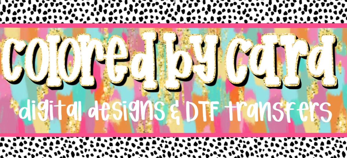 Colored By Cara offers four products! Custom PNG's, DTF Transfers, Gang Sheets, and fully customizable apparel! Grab your next favorite design, order all your prints, or let us create your next favorite graphic tee!