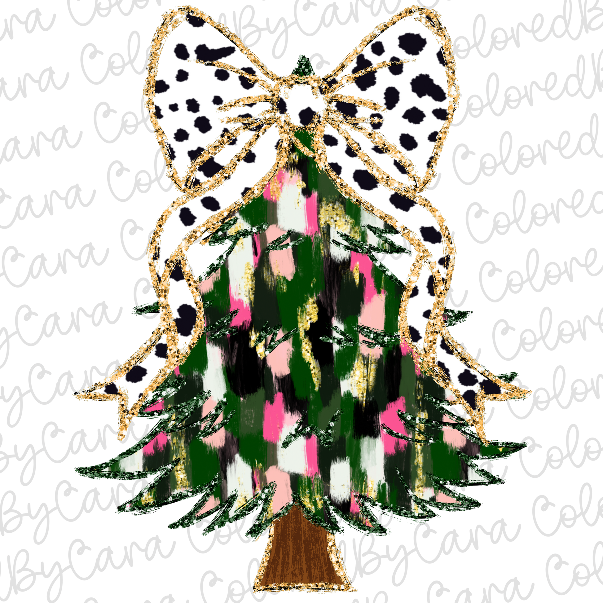 Green and Pink Coquette Christmas Tree PNG File