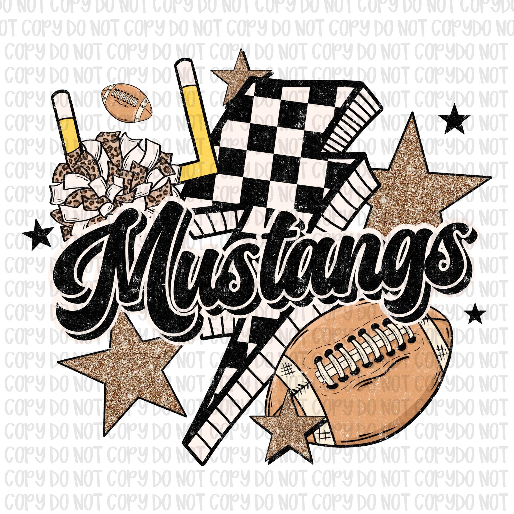 Retro Checkered Mustangs Football